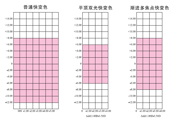特点: 1、轻薄设决效果更清楚,变色和退色更快,色调更均匀! 2、有效阻断紫外线,为你的双眼提供精心呵护。 3、拥有变色双光变色渐进多焦点等多种选择为你提供个性化服务! 供选择的产品: 1.558普通块变色(变灰色、变茶色) 1.558平顶双光快变色(变灰色、变茶色) 1.558渐进多焦点快变色(变灰色、变茶色) 产品参数: 折射率:————————1.558 比重( g/cm3 ):———1.24 阿贝数:————————36.0 产品光度范围
