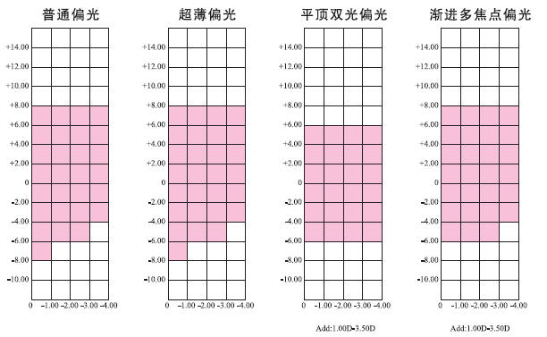 特点: 反射光和能引发白内障的有害紫外线,有如窗户的百叶窗,将种杂乱无章的光线阻隔于偏光栏外,使光线平行,柔和的进入你的眼睛。 供选择的产品: 普通偏光(灰色、茶色、绿色) 超薄偏光(灰色、茶色) 平顶双光偏光(灰色、茶色) 渐进多焦点偏光(灰色、茶色) 产品参数: 折射率:————————1.499———————1.555 比重( g/cm3 ):————1.32————1.24 阿贝数:————————57.0————36.0 抗紫外线:———————380————380 产品光度范围